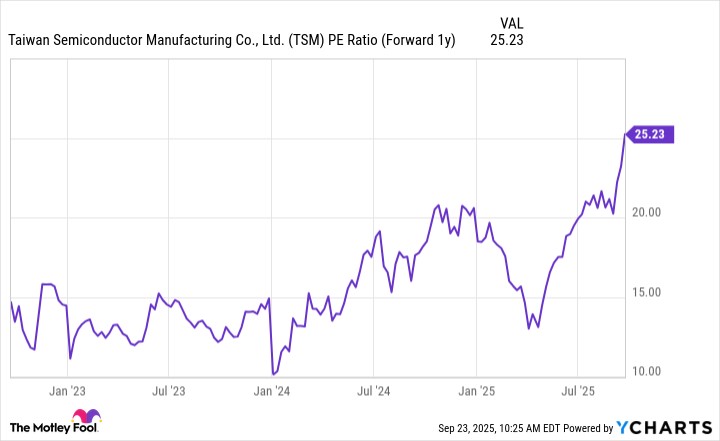 台積電市盈率(未來 1 年)數據來源於 YCharts
