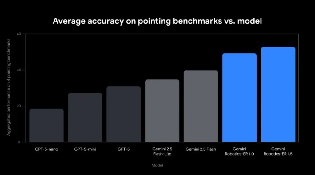 In terms of pointing accuracy, Gemini Robotics-ER 1.5 is currently the most precise visual-language model.