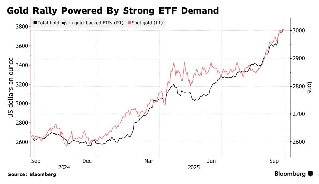 So far this year, gold prices have surged over 40%, driven by demand for gold purchases from major central banks and the Federal Reserve's resumption of rate cuts, with gold prices continuously reaching historic peaks. Next week, gold prices are expected to achieve a third consecutive quarterly increase, with current holdings in gold ETFs rising to the highest level since 2022. Institutions such as Goldman Sachs and Deutsche Bank have indicated that they expect the upward trend in gold prices to continue.