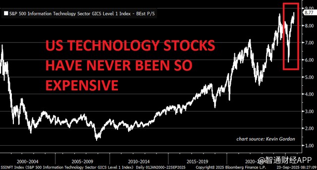 The US stock market is facing bubble alarms, with analysts warning that the current economic and market conditions are similar to those before the 1999 internet bubble. Despite adverse signs in the employment and real estate markets, major stock indices continue to rise, driven by massive fiscal deficits and investments in artificial intelligence. The valuation of the S&P 500 Information Technology sector has reached historical highs, with the Shiller price-to-earnings ratio nearing 40, indicating irrational exuberance in the market. Investors are concerned about the returns from artificial intelligence, and the market is significantly overbought