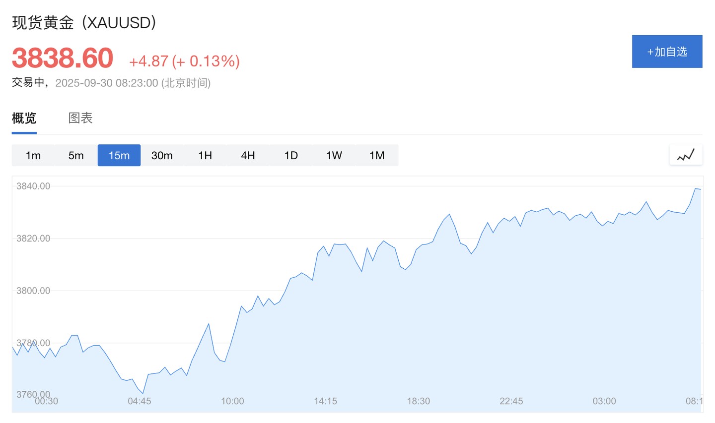 Trump's White House negotiation fails, the U.S. government is "more than a day" away from a shutdown, and gold prices break through $3,800
