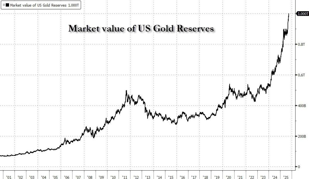 美國黃金儲備市值首次突破 1 萬億美元,這重新點燃了市場關於美國可能重估其黃金儲備的猜測。
