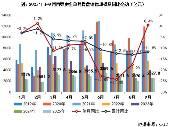 CRIC: In September, the TOP 100 real estate companies achieved a sales operation amount of 252.78 billion yuan, a year-on-year increase of 0.4%