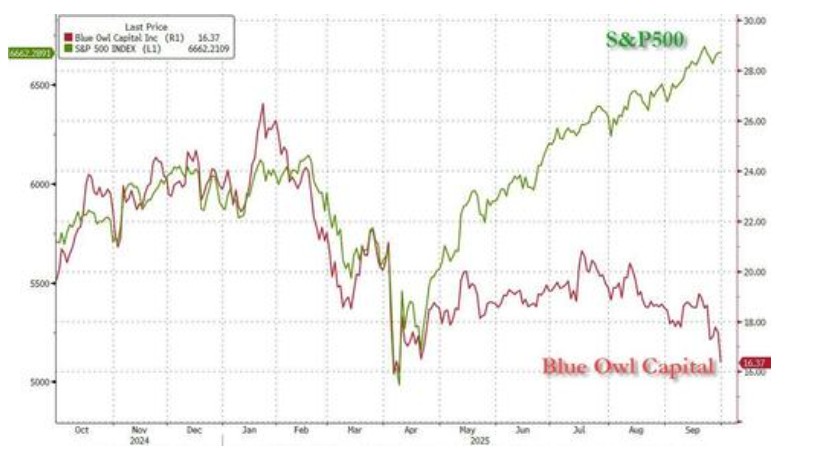 Market data shows that BXSL, a private credit fund under Blackstone Group, one of the largest private credit management companies in the world, has seen its stock price drop to a new low for 2025, significantly underperforming the S&P 500 index. Another industry giant, Blue Owl, is also in a precarious position. According to Bloomberg, Blue Owl has been deeply involved in financing activities in the AI sector.