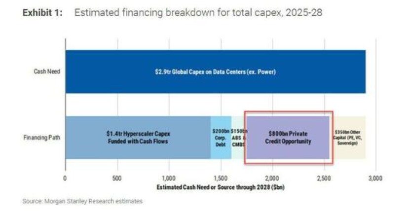 Every six months, the "bubble theory" arrives as scheduled, triggering a wave of panic and adjustment in the market, only to continue its advance in fervor. But how much longer can this feast last? Dangerous signals seem to have emerged—AI capital expenditures are shifting from "self-financing" to "debt-driven." Morgan Stanley predicts that global data center spending will reach as high as $2.9 trillion by 2028, with approximately $1.5 trillion facing a funding gap that needs to be filled by debt