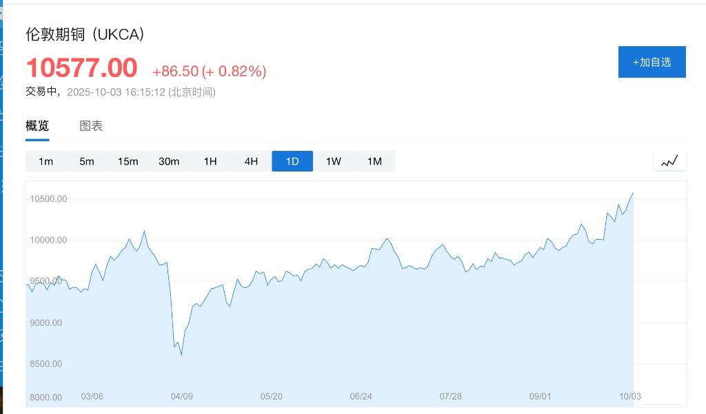 銅價大漲,倫敦期銅價格飆升至年內高點至 10577 美元/噸。此輪上漲的直接導火索是全球第二大銅礦、Freeport-McMoRan 公司在印尼的 Grasberg 銅礦,因發生重大事故而宣佈遭遇不可抗力,導致市場供應預期急劇收緊。