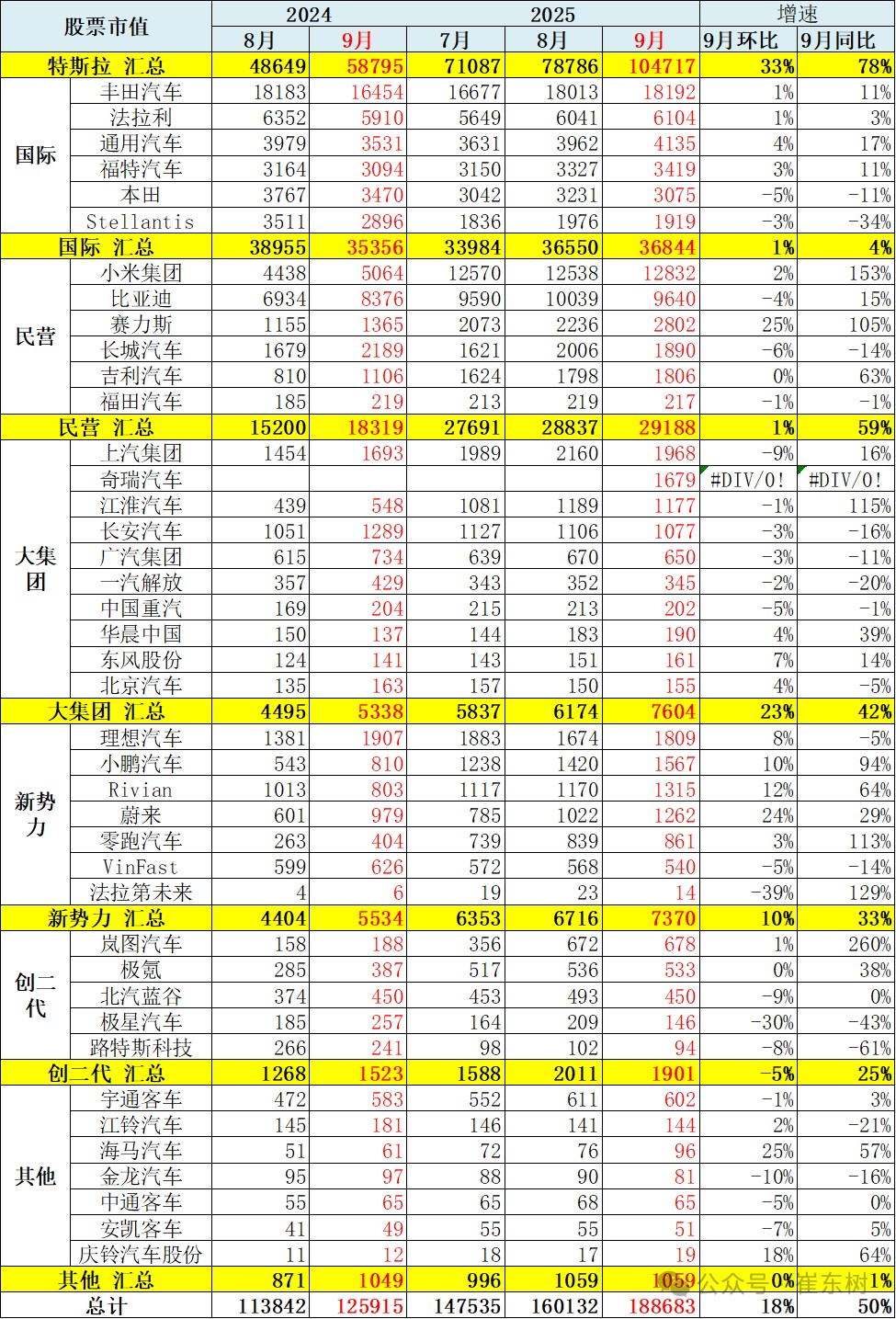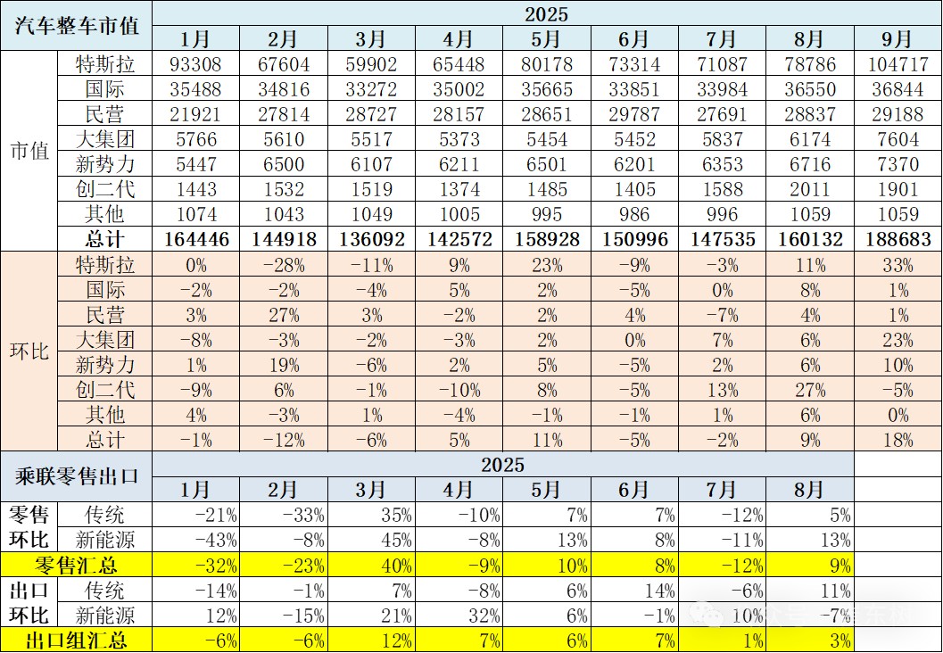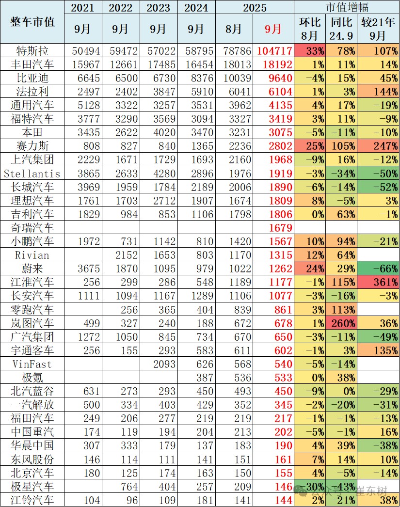 According to Zhitong Finance APP, on October 5th, Cui Dongshu stated that the market capitalization of automobile manufacturers is not only the pricing of the company's current operating results by the capital market but also a "barometer" reflecting the trends, technological changes, and policy directions in the automotive industry. Many automobile manufacturers regard market capitalization management as an important task, so tracking changes in market capitalization is also an important area of industry research. The changes in market capitalization for September continue to reflect the core growth momentum driven by new energy, but the improvement in market capitalization brought about by stable fuel vehicle companies is also a positive trend. There is a differentiation in market capitalization among international car companies, with most international companies in the US stock market performing relatively average, while domestic companies in the Hong Kong stock market perform excellently.