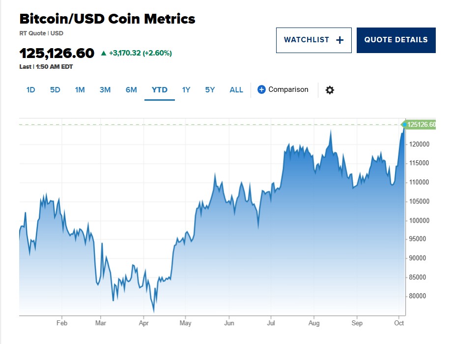The world's largest cryptocurrency reached a peak of $125,689 during the Asian trading session on Sunday (October 5), surpassing the previous record of $124,514 set on August 14. This rise in Bitcoin is supported by the increase in U.S. stocks and inflows into Bitcoin-related exchange-traded funds.