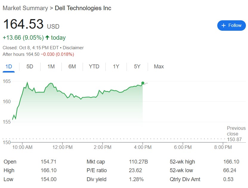 - Raised the target price from $160 to $170 and maintained an "Outperform" rating, with its report highlighting Dell's strong momentum in enterprise and Sovereign AI sectors.