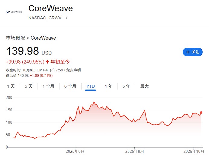 CoreWeave went public in March this year, becoming the largest tech IPO in the U.S. since 2021, successfully raising $1.5 billion. With the continued growth in investor demand for AI and data centers, the company's stock price has soared over 200% since its Wall Street debut.