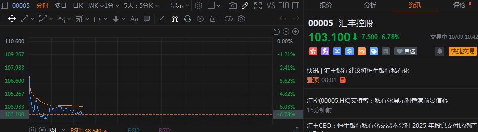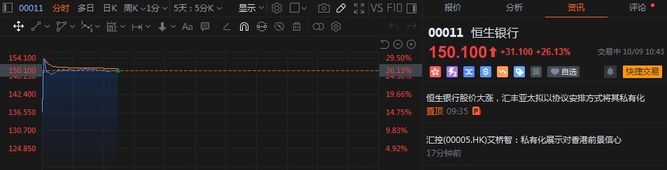 公告發布後,滙豐控股港股股價重挫逾 6%,恒生銀行暴漲超 26%,勢創歷史最大單日漲幅。