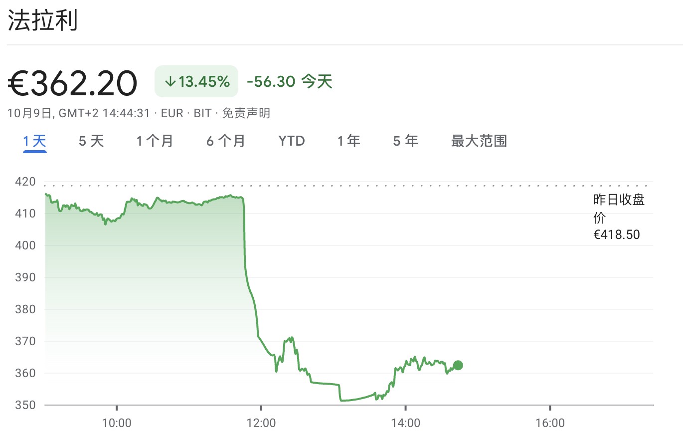 "Disappointing" earnings outlook triggers sell-off, Ferrari's stock price plummets 16%, marking the largest decline since 2016