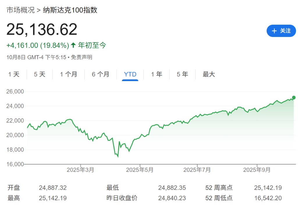This official warning injects new urgency into the already heated market debate. So far this year, the Nasdaq 100 index has risen by 19%, with its forward price-to-earnings ratio reaching 28 times, significantly higher than the ten-year average of 23 times.