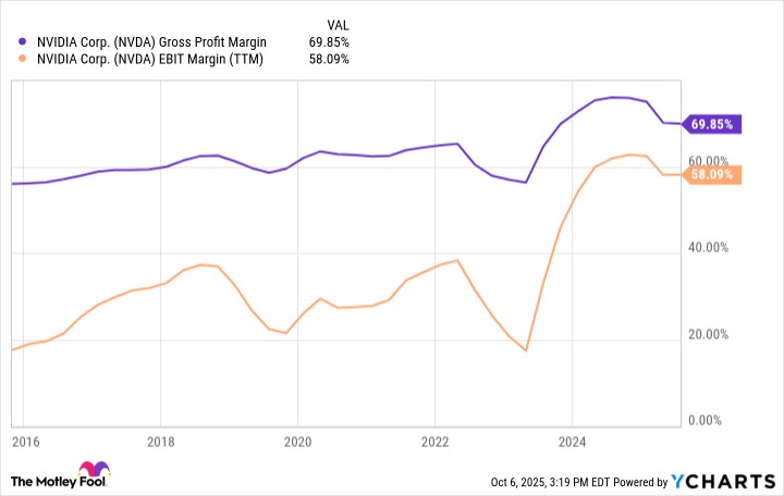 This could impact Nvidia's dominance. Not only could it decrease its unit volume, but it could eliminate the company's sustained pricing power, which has sent gross profit margins up to 70% and EBIT (earnings before interest and taxes) margins up to 58% over the last 12 months. Pricing power is a huge reason why Nvidia now has the largest market cap in the world. A reversal of this trend could mean pain for its shareholders.