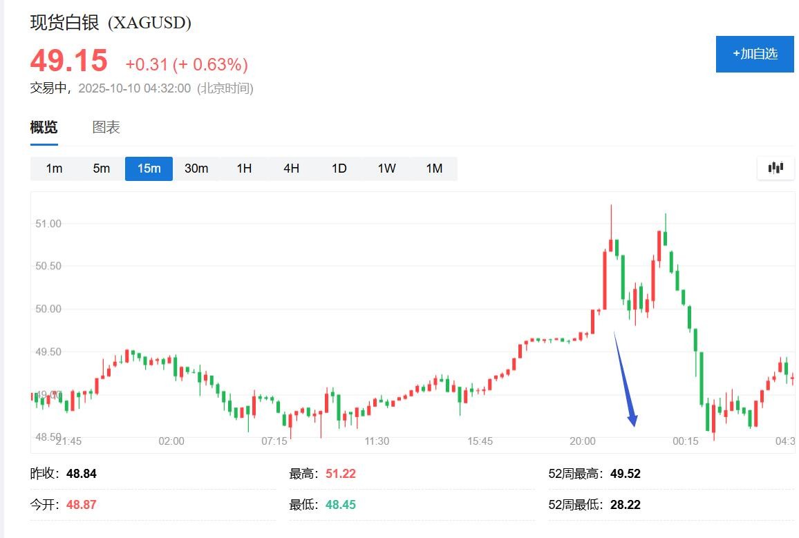 Temporary profit-taking or reversal? Gold and silver futures turn down, spot silver falls back after historically breaking above $50