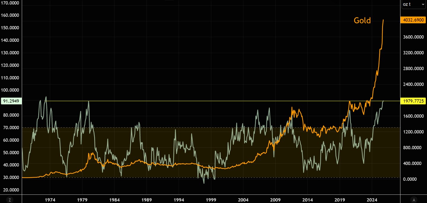 The Market Ear 指出,黃金月線 RSI 處於"大多數現有投機者出生以來最超買的水平"。