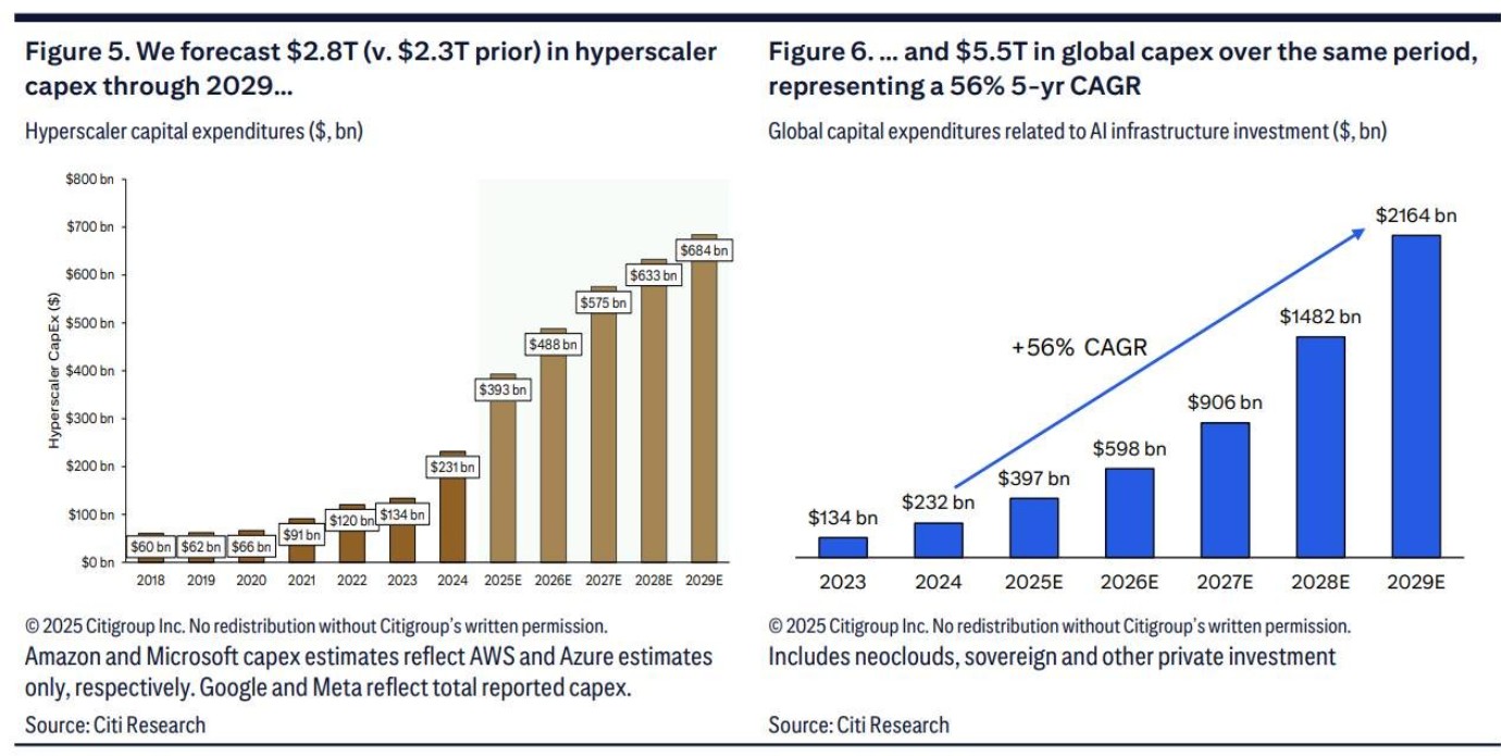 Recently, Citigroup's senior analysts have significantly raised their forecasts for AI infrastructure spending by the world's largest tech giants, including Microsoft, Google, Amazon, Meta, and SAP, increasing the 2026 AI infrastructure spending forecast from $420 billion to $490 billion. At the same time, Citigroup expects that the cumulative AI infrastructure spending forecast for tech giants by 2029 will also rise from $2.3 trillion to $2.8 trillion. Additionally, according to the calculations in this research report, the global demand for AI computing is expected to add 55 gigawatts of power capacity by 2030, which is anticipated to translate into up to $2.8 trillion in incremental AI computing-related spending, with the U.S. market accounting for $1.4 trillion