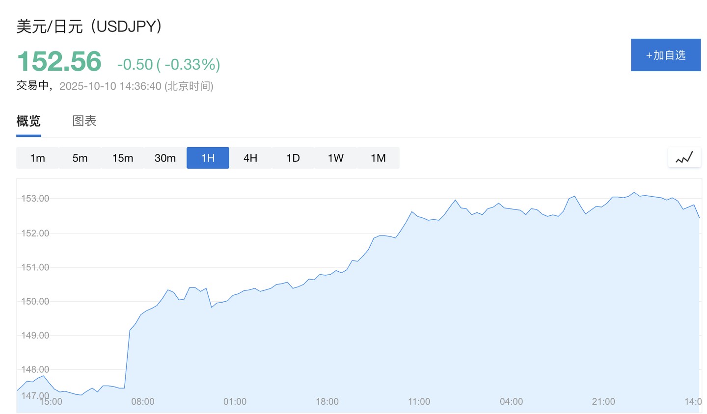 "The successor of Abe," Sanae Takaichi, won the Liberal Democratic Party presidential election, triggering a "collapse" of the yen, with the USD/JPY exchange rate breaking through the 153 mark. Both Nomura and Citigroup believe that the yen will continue to decline in the short term, with Citigroup expecting the USD/JPY to rise to the 154-155 range.
