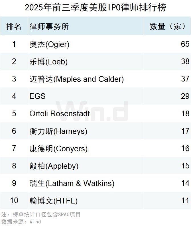 In terms of IPO lawyers, Ogier participated in 65 companies' IPO projects, ranking first; Loeb participated in 38, ranking second; Maples and Calder participated in 37, ranking third.