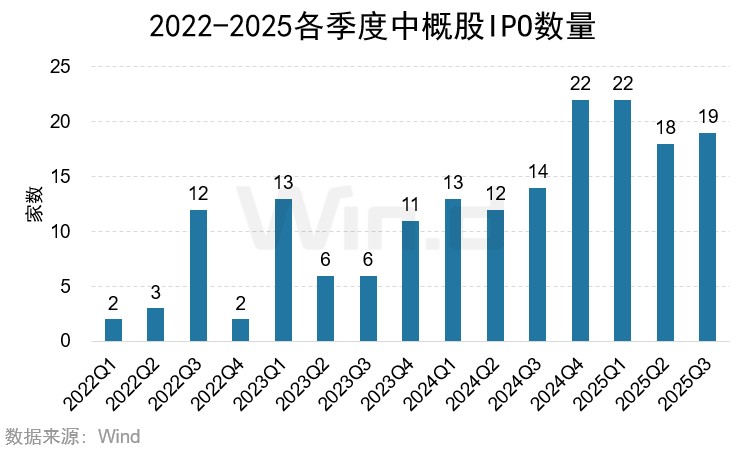 In the first three quarters of 2025, a total of 59 Chinese companies went public in the U.S., an increase of 20 compared to the same period last year, with a financing scale of $1 billion, a decrease of 58.35% year-on-year. Only 2 leading companies raised over $100 million, namely Bawang Chaji ( $411 million) and Ascentage Pharma ( $126 million).