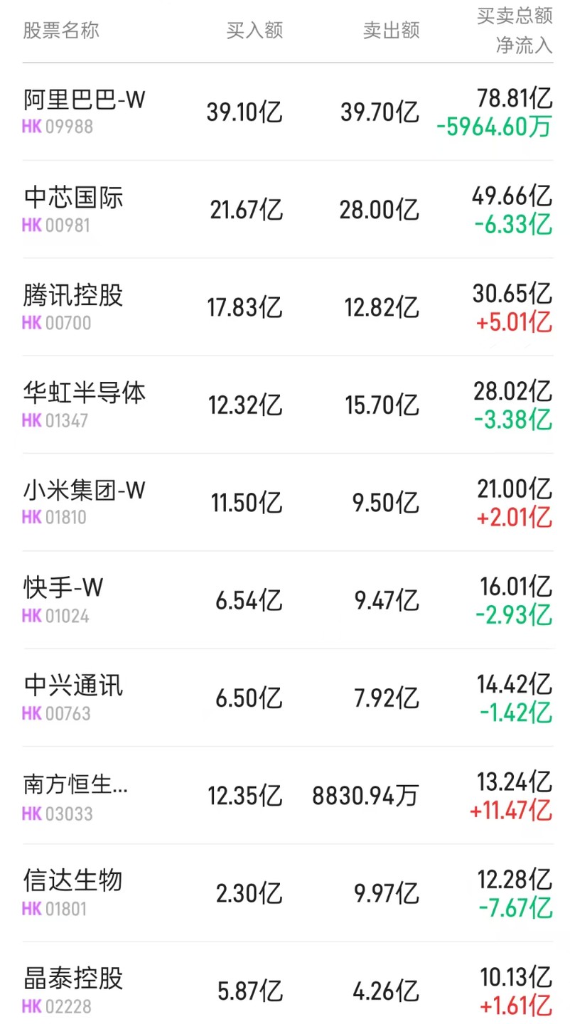 北水淨買入最多的個股是南方恒生科技 (03033)、小米集團-W(01810)、騰訊 (00700)。北水淨賣出最多的個股是中芯國際 (00981)、阿里巴巴-W(09988)、信達生物 (01801)。