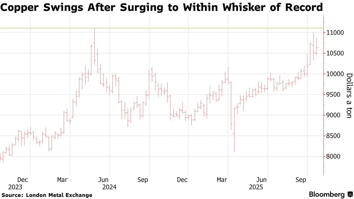 在美聯儲主席鮑威爾暗示可能再次降息後,銅價反彈,業內人士預計銅價將觸及每噸 12000 美元。受鮑威爾講話提振,LME 銅期貨漲 1.26%,報每噸 10725.05 美元。銅價受美聯儲降息前景及全球銅礦生產中斷影響,尤其是自由港 - 莫克莫蘭在印尼 Grasberg 礦的運營中止,預計將對銅供應造成重大影響。
