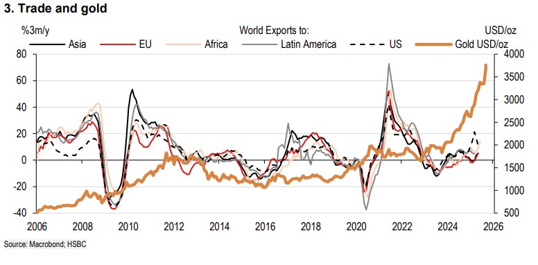 The parabolic rise of gold is starting to raise concerns, primarily for three reasons: the speed of the increase is too rapid; it is gradually decoupling from market uncertainty indicators; and it is diverging from the trends of real interest rates and the U.S. dollar.