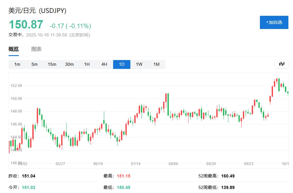 Affected by the instability of Japan's political situation and the recent cooling of expectations for interest rate hikes by the Bank of Japan, the yen has significantly depreciated against the US dollar this month, once hitting an eight-month low. Bessent stated that if the Bank of Japan's policies are appropriate, the yen will stabilize at a suitable level. Compared to Bessent's strong tone in August this year, stating that the Bank of Japan was "behind the curve" in addressing inflation, its current attitude has clearly softened