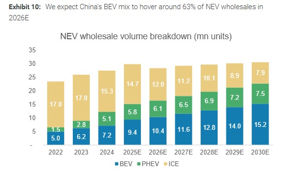 (It is expected that the proportion of pure electric vehicles in the total sales of new energy vehicles in China will remain around 63% in 2026)