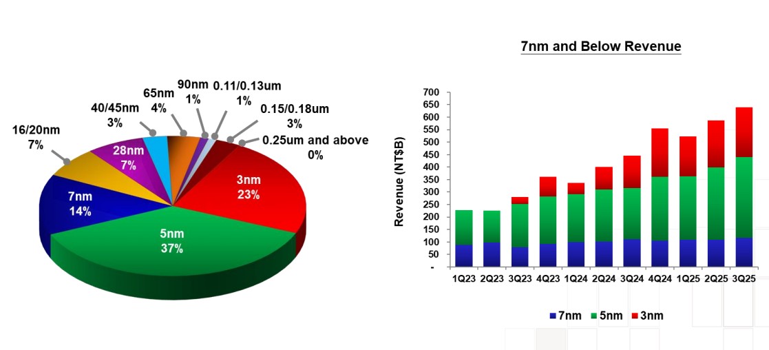 - 先進製程(7nm 及以下)佔總晶圓收入 74%,3nm 佔 23%,5nm 佔 37%