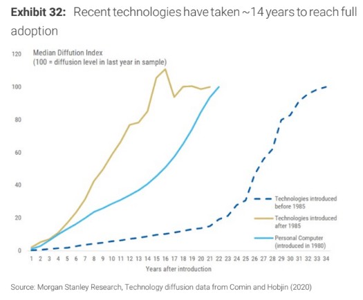 摩根士丹利分析師 Stephen Byrd 稱,"雖然 AI 採用速度可能快於過去的技術,但我們認為現在看到它在經濟數據中的體現還為時過早,除了企業投資之外。"他預計 AI 的影響要到本十年末及下個十年才會出現在經濟數據中。