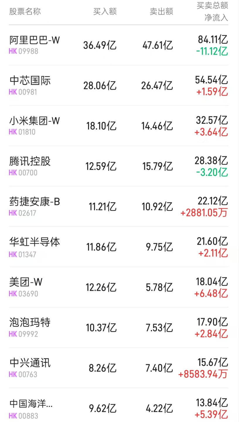 Northbound Capital Trends | Northbound capital net purchases of HKD 6.303 billion, continued selling of SMIC and Huahong, with over HKD 1.1 billion in Meituan throughout the day