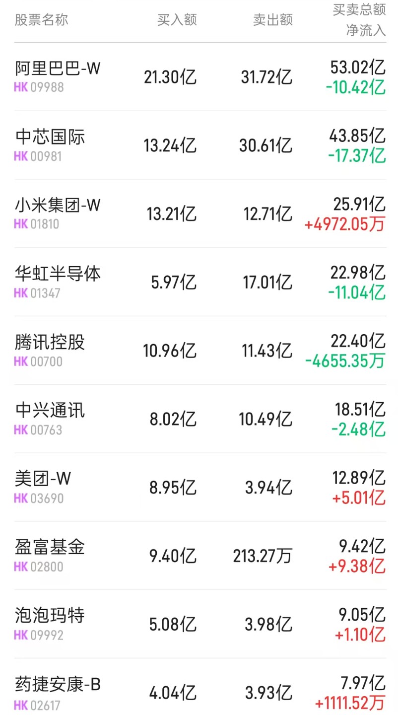 阿里巴巴-W(09988) 遭淨賣出 21.53 億港元。消息面上,雙 11 電商大促已進入啓動密集期。淘寶/天貓平台於 10 月 9 日同步投放 30 億元定金直播紅包,用户每日最高可領超 2000 元。淘寶閃購首次參與雙 11,88VIP 會員活動期間每日可領 5 折外賣紅包。浙商證券發佈研報稱,預測 FY26Q2 阿里中國電商業務收入為 1269 億元,yoy11.6%;EBITA Margin 為 6.8%,同環比大幅下降,系三季度即時零售大幅投入所致。