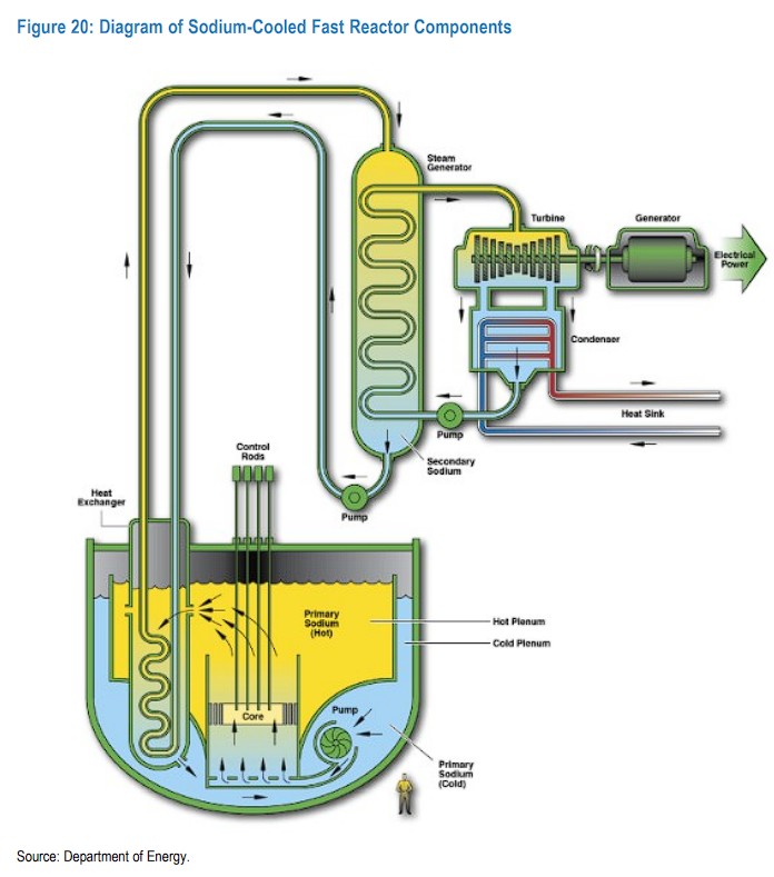 Sodium-Cooled Fast Reactor (SFR) uses liquid sodium as a coolant and operates under a fast neutron spectrum, enabling fuel reuse and reducing nuclear waste. Arc's ARC-100 (100 MW), Oklo's Aurora-INL (75 MW), and TerraPower's Natrium (345 MW) are major development projects. TerraPower's Natrium project is expected to be operational by 2032.