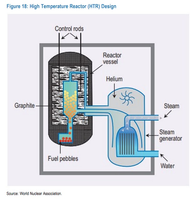 High-Temperature Gas-Cooled Reactor (HTGR) uses helium as a coolant, and ceramic-coated fuel can produce high temperatures of about 750 degrees Celsius. X-Energy's Xe-100 (80 MW), Ultra Safe Nuclear's MMR (5 MW), and Radiant's 1 MW design represent major developers in this field. This type of reactor performs excellently in industrial applications but is limited by a shortage of High-Assay Low-Enriched Uranium (HALEU) fuel supply.