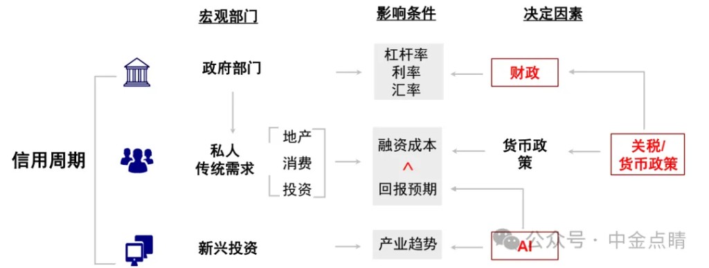 圖表 8:信用週期的決定機制分為三部分:財政、私人部門傳統需求、科技產業趨勢帶動的新興投資