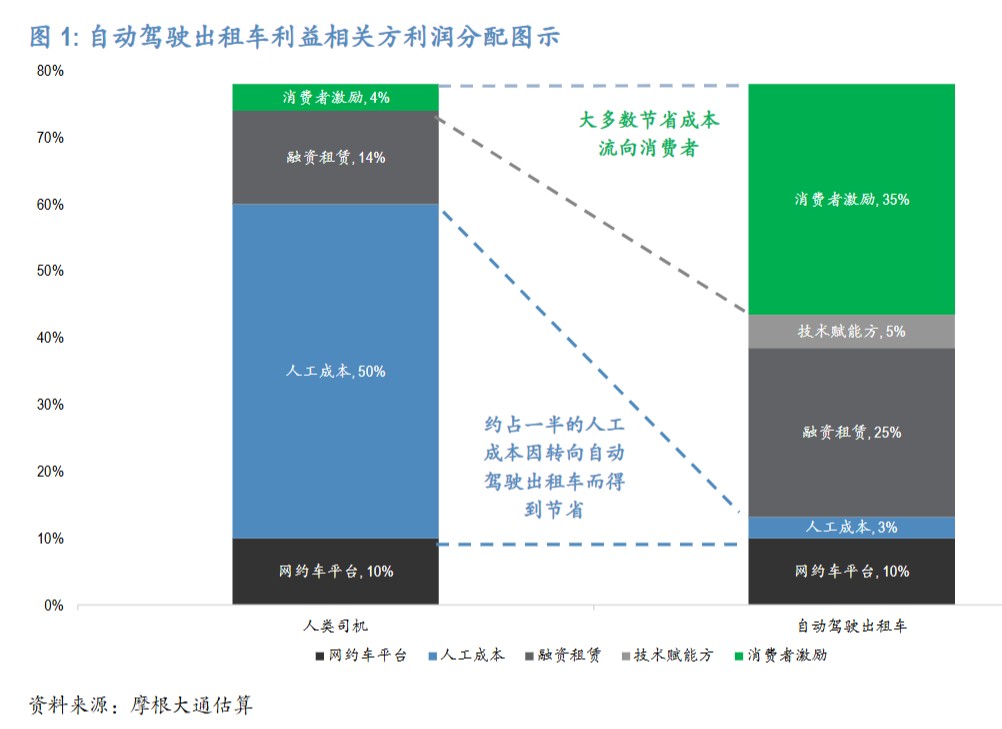The report depicts the future landscape of the RoboTaxi industry chain as a distribution game centered around the massive cake of "cost savings."