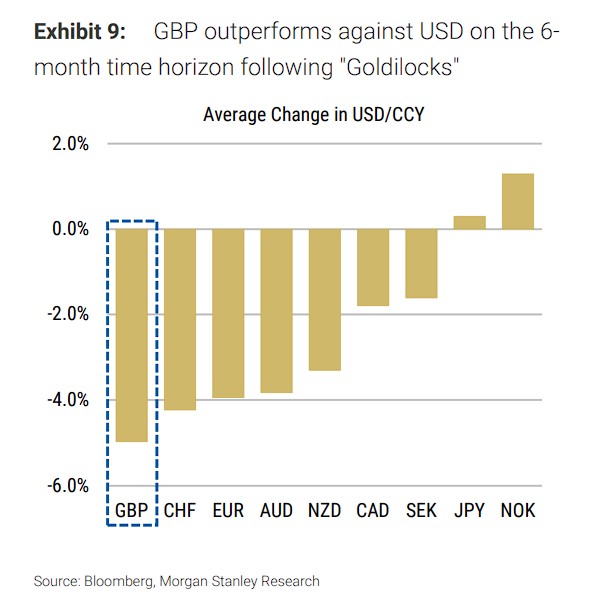 大摩称,历史数据显示,在"金发姑娘"情景出现后,做多英镑兑美元产生最佳回报。