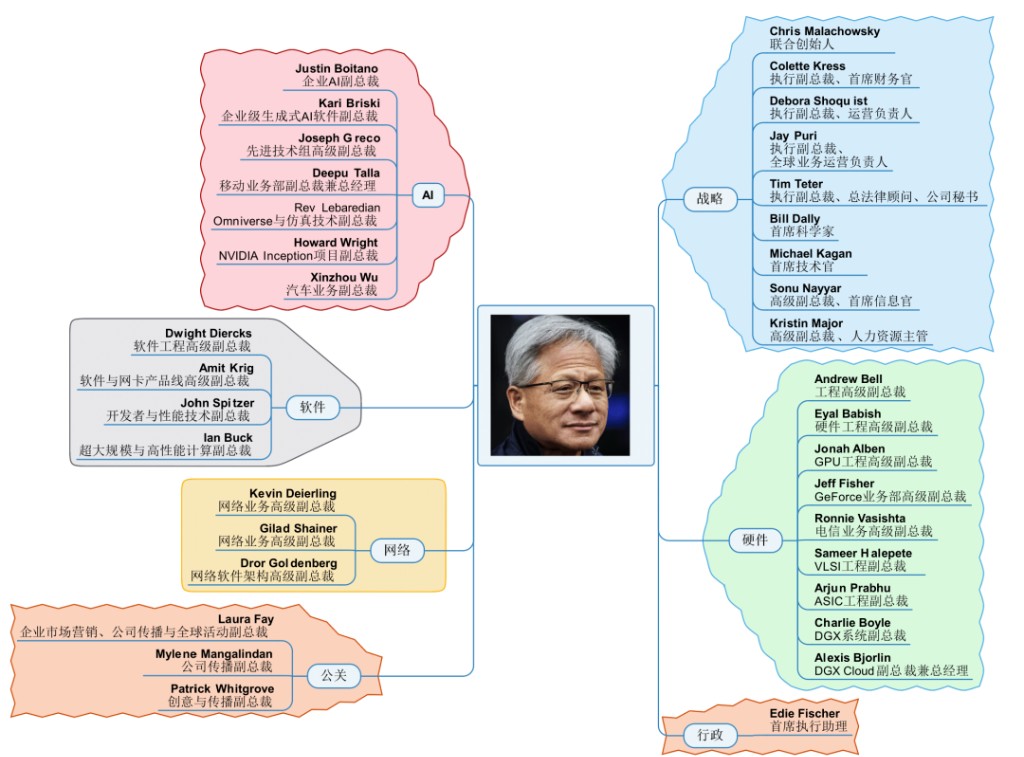 戰略、硬件、軟件、AI、公關、網絡,以及老黃的一位執行助理。