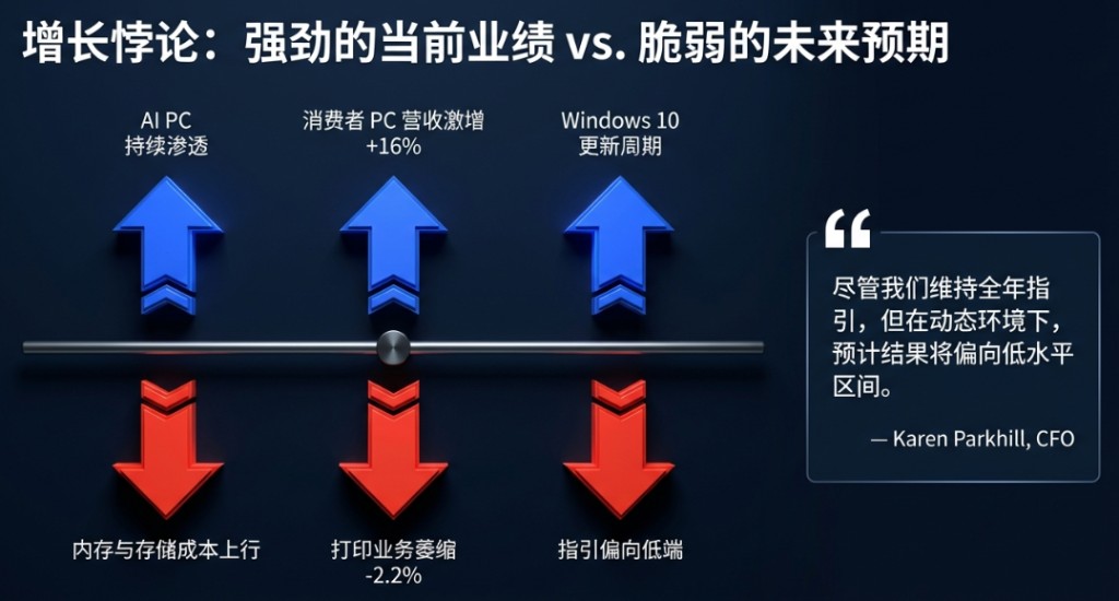 打印業務貢獻了本季度 18.3% 的高運營利潤率,是整體盈利能力的重要穩定器,但營收層面的頹勢已難以迴避。