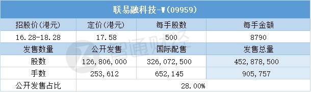配售結果 | 聯易融科技-W(09959) 一手中籤率 20% 最終定價 17.58 港元
