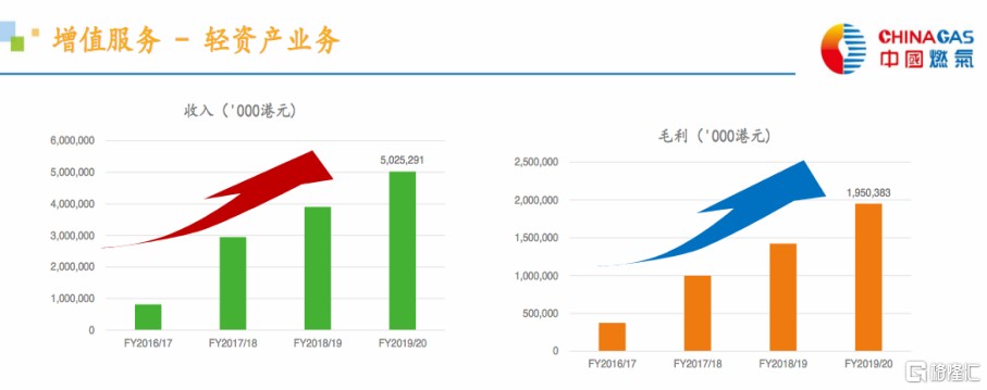 再者,筆者去查了一下中燃增值業務過往的業績,可謂是 “從零到一”、勢如破竹。公開資料顯示,中燃增值業務板塊直到 2016 財年業績發佈才首次出現在業績簡報的附錄 – 發展策略與展望部分,一年之後才作為一個獨立板塊出現在業績簡報中。也就是説,中燃估計大約是在2014/15年的時候開展增值業務,在2017年左右才將其作為一個主要業務板塊去發展