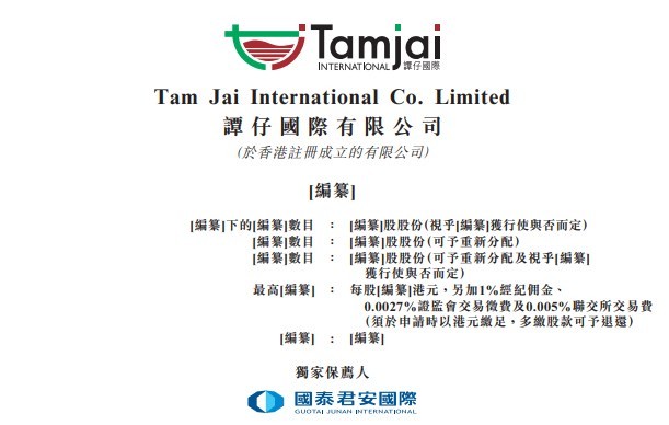 據港交所 4 月 15 日披露,譚仔國際有限公司向港交所遞交主板上市申請,國泰君安國際為其獨家保薦人。