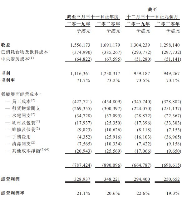 招股書顯示,公司是在香港經營 “譚仔雲南米線” 及 “譚仔三哥米線” 品牌快速休閒連鎖餐廳的營運商,在中國內地及新加坡也擁有業務。截至 2021 年 4 月 7 日,公司總共經營 148 間餐廳。根據 2019 年的餐廳數目,歐睿將公司列為香港亞洲粉面專門店的第 1 位。