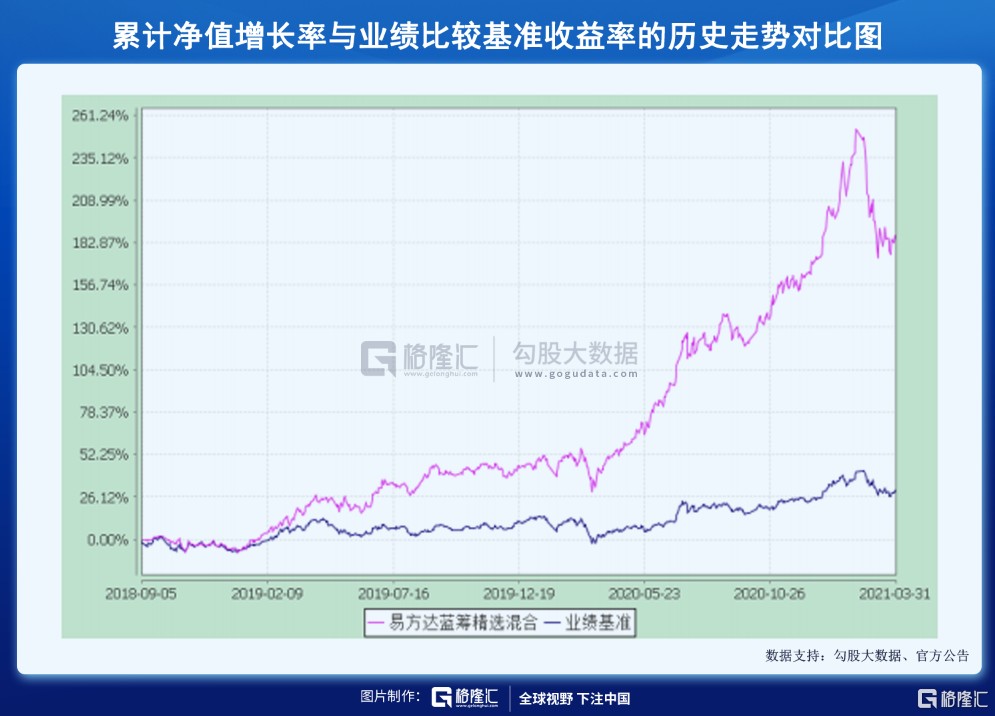 易方達藍籌精選混合在張坤任職期間總回報為 184.64%,任職年化回報 49.03%,同類排名 350/1906;1 年收益率 86.37%,同類排名 27/1080;2 年收益率 128.41%,同類排名 39/793。