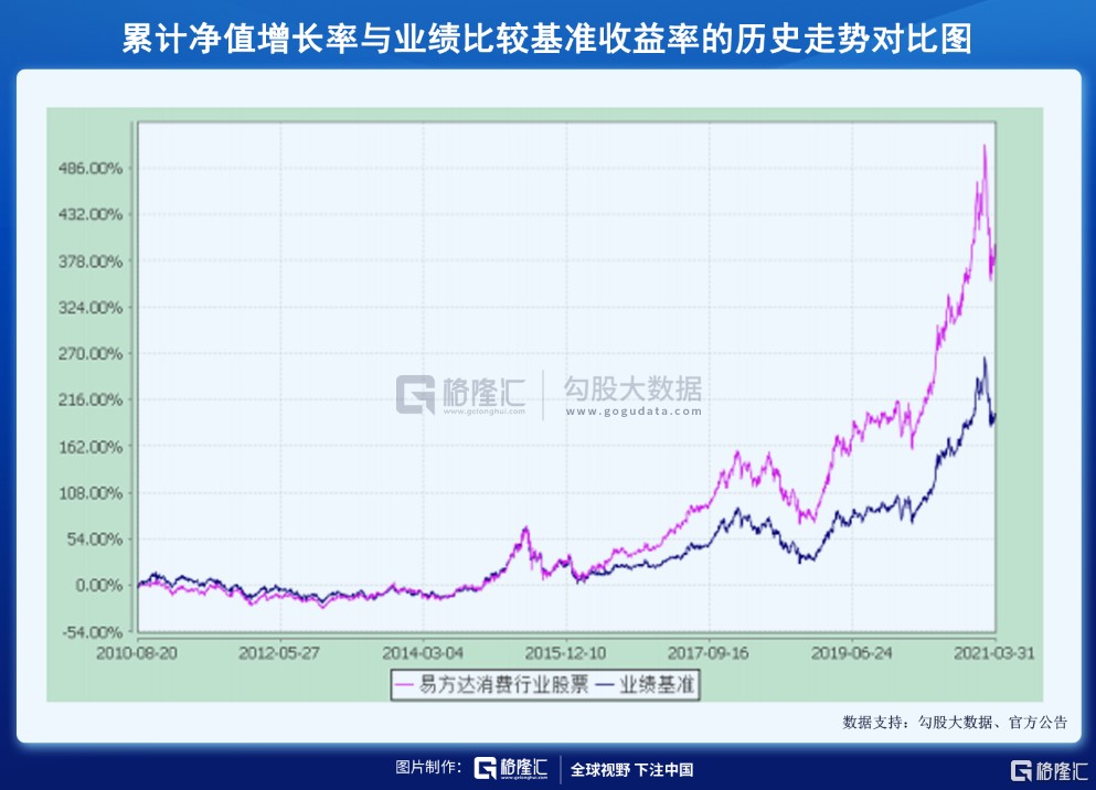 以消費見長的蕭楠的持倉同樣受到市場矚目,其代表產品易方達消費行業股票在蕭楠任職期間總回報為 503.16%,任職年化回報 23.35%,同類排名 1/17;1 年收益率 71.08%,同類排名 67/426;2 年收益率 86.84%,同類排名 146/355;3 年收益率 126.32%,同類排名 52/296。