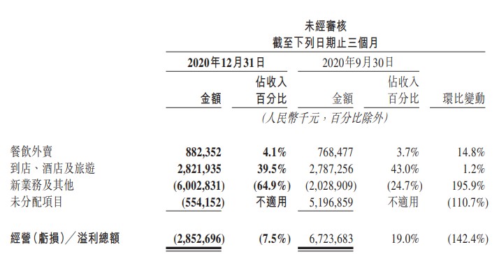 去年四季報數據顯示,美團營收連續第三個季度同比提升,但包括社區團購在內的新業務經營虧損,由 2019 年同期的 13 億元人民幣擴大至 60 億元,經營利潤率由負值 21.7% 同比減少 43.2 個百分點至負值 64.9%。美團表示,由於正在大力發展社區電商業務,在未來幾個季度可能繼續錄得經營虧損。