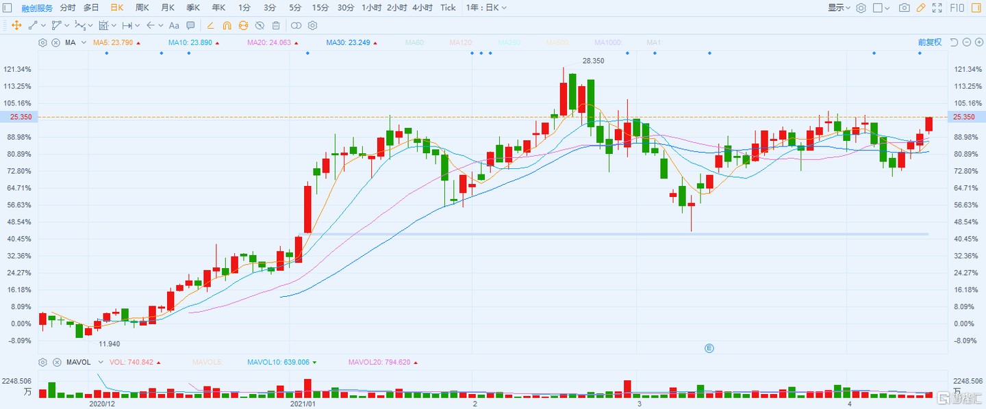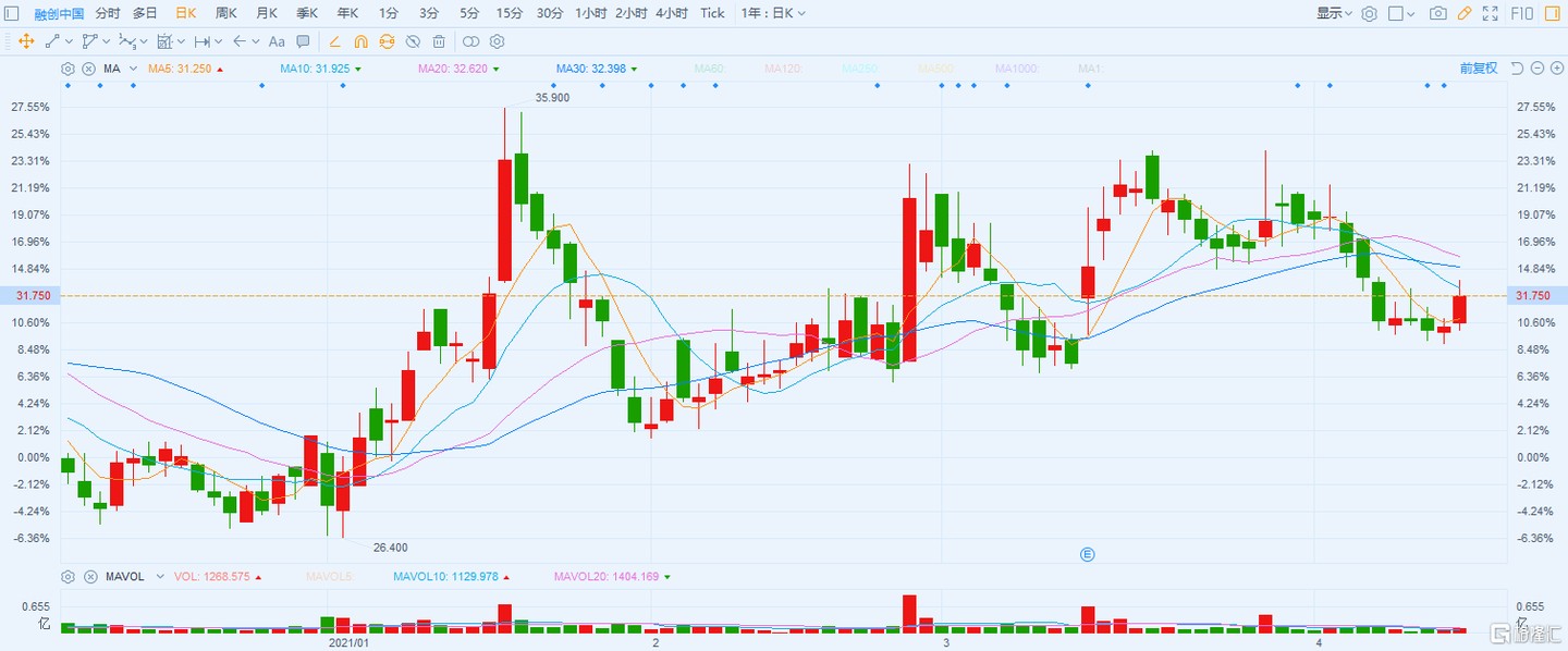 4 月 17 日週六,融創中國 (1918.HK) 與彰泰集團在無錫簽署戰略合作框架協議。根據此前 4 月 16 日盤後融創中國發布的公告,雙方將共同設立合資公司,該交易對價約為 99.1 億元人民幣,交易完成後,融創中國與彰泰集團將分別持有合資公司 80% 及 20% 的股權。消息公佈後,週一開盤,融創中國股價快速走高,當日漲幅一度超 3.3%,市場對這一事件的反饋正面。