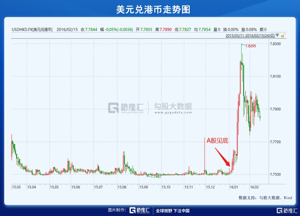 這裏面,一部分外資扮演了極不光彩的角色。恰巧的是,2016 年初,本輪股災見底後,美元兑港幣離開 7.75 強勢區域,證明熱錢規模性流出香港。