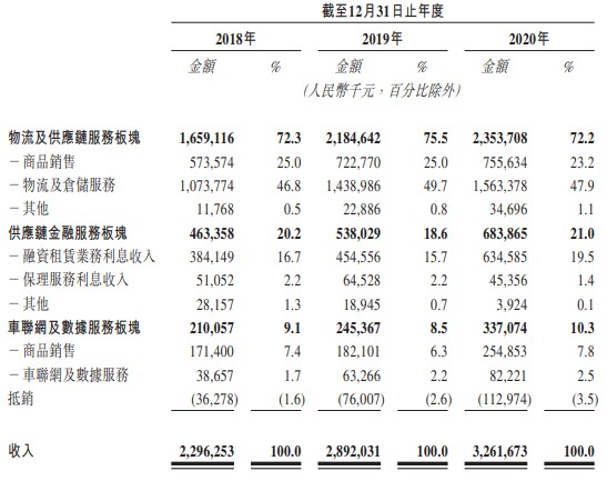 通過整合商用車全產業鏈的多個環節以及覆蓋商用車全生命週期,德銀天下將目前業務組合分為了三大部分,涵蓋物流及供應鏈服務板塊,包括供應鏈業務、整車銷售業務及後市場產品業務;供應鏈金融服務板塊,包括融資租賃業務、保理業務和保險經紀業務;及車聯網及數據服務板塊。